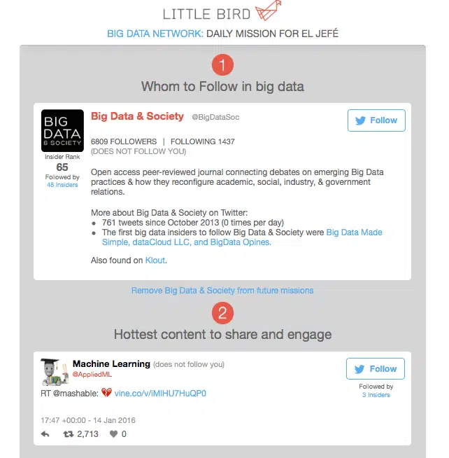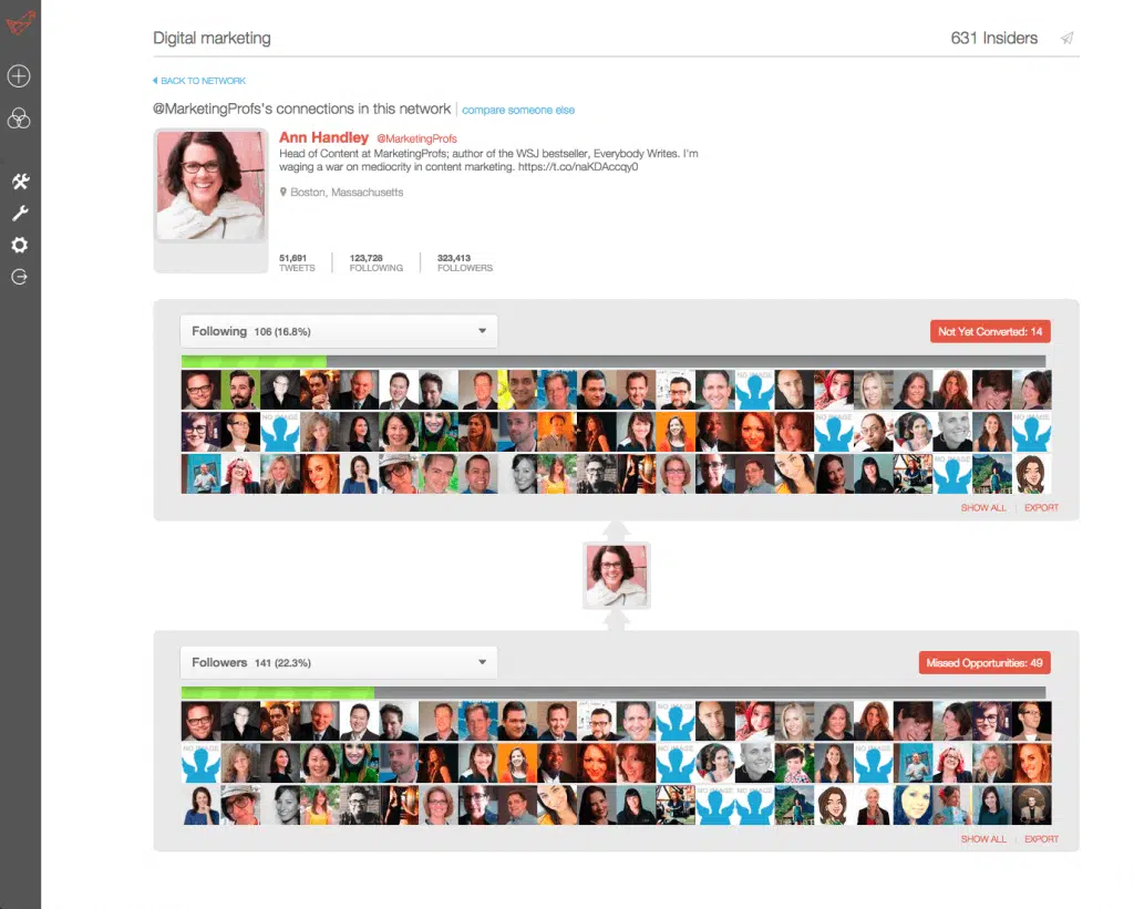 Une fois que vous aurez identifié les influenceurs, vous pourrez suivre leur activité sur les réseaux sociaux directement depuis l’interface BuzzSumo, mais aussi interagir pour entrer en contact avec eux.