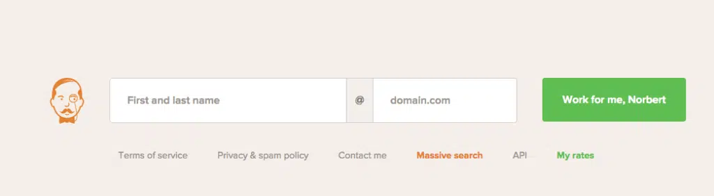 Comme vous le voyez, il suffit d’entrer dans le prénom et le nom de votre contact dans le champ de gauche et le nom de domaine dans le champ de droite pour obtenir l’adresse email (en cliquant sur « Work for me, Norbert »).