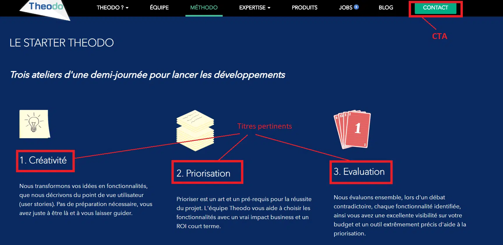 Voici une page expliquant les différentes étapes d’un process de service (l’intégrateur système Theodo) :