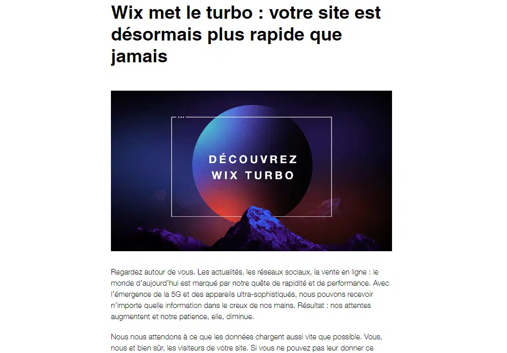 Exemple : un article de blog présentant une amélioration des services (Wix).