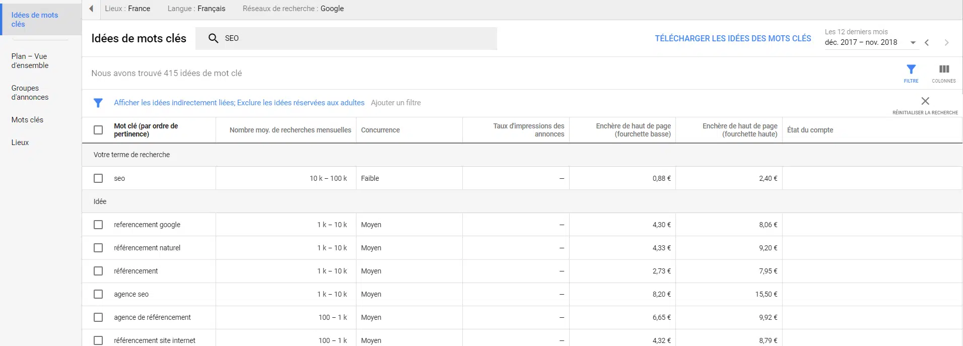 - Google Keyword Planner : Cet outil, intégré à Google Ads, permet de connaître les requêtes associées à un mot-clé précis. Pour des analyses plus avancées, des plateformes comme Semrush ou Ahrefs sont de plus en plus utilisées.