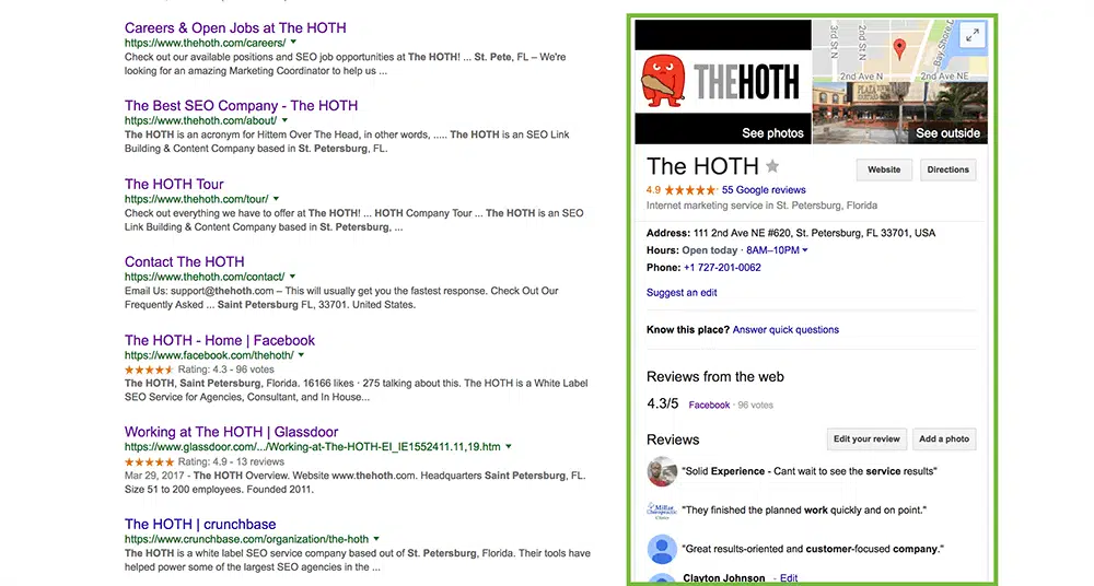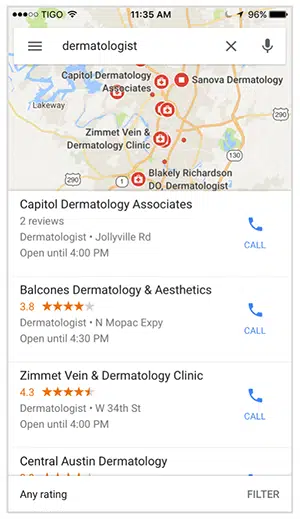 Le SEO local est l’optimisation de vos propriétés en ligne afin que vous puissiez être trouvé dans les recherches localisées. En utilisant les ressources et les stratégies présentées dans ce guide, vous pouvez être sûr que votre entreprise sera trouvée lorsque vos clients cibles effectueront des recherches, sur Google par exemple. Lorsque nous parlons de référencement local, nous parlons de tous les types de recherches localisées. Les stratégies décrites dans cet article concernent de nombreux domaines. Voici à quoi ressemble une recherche typique sur Google :