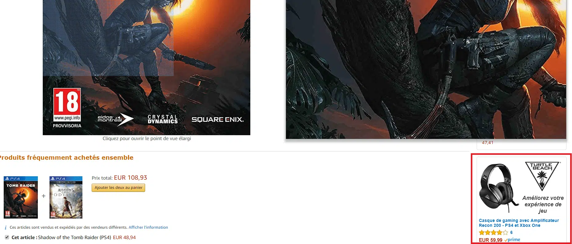 Les annonces de produits sponsorisés apparaissent aussi sur les fiches produits, dans le carousel :