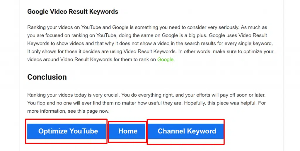 Contrairement à l’exemple précédent où la numérotation indique une pagination, YouTube n’utilise pas la numérotation. Cela ne signifie toutefois pas qu’ils n’utilisent pas la pagination sur leur site. Chacun des boutons représente une page complètement distincte qui aide l’utilisateur à revoir son cours gratuit sur YouTube. Ils ont un bouton précédent « Optimiser YouTube », un bouton principal « Home » et le chapitre suivant « Channel Keyword ».
