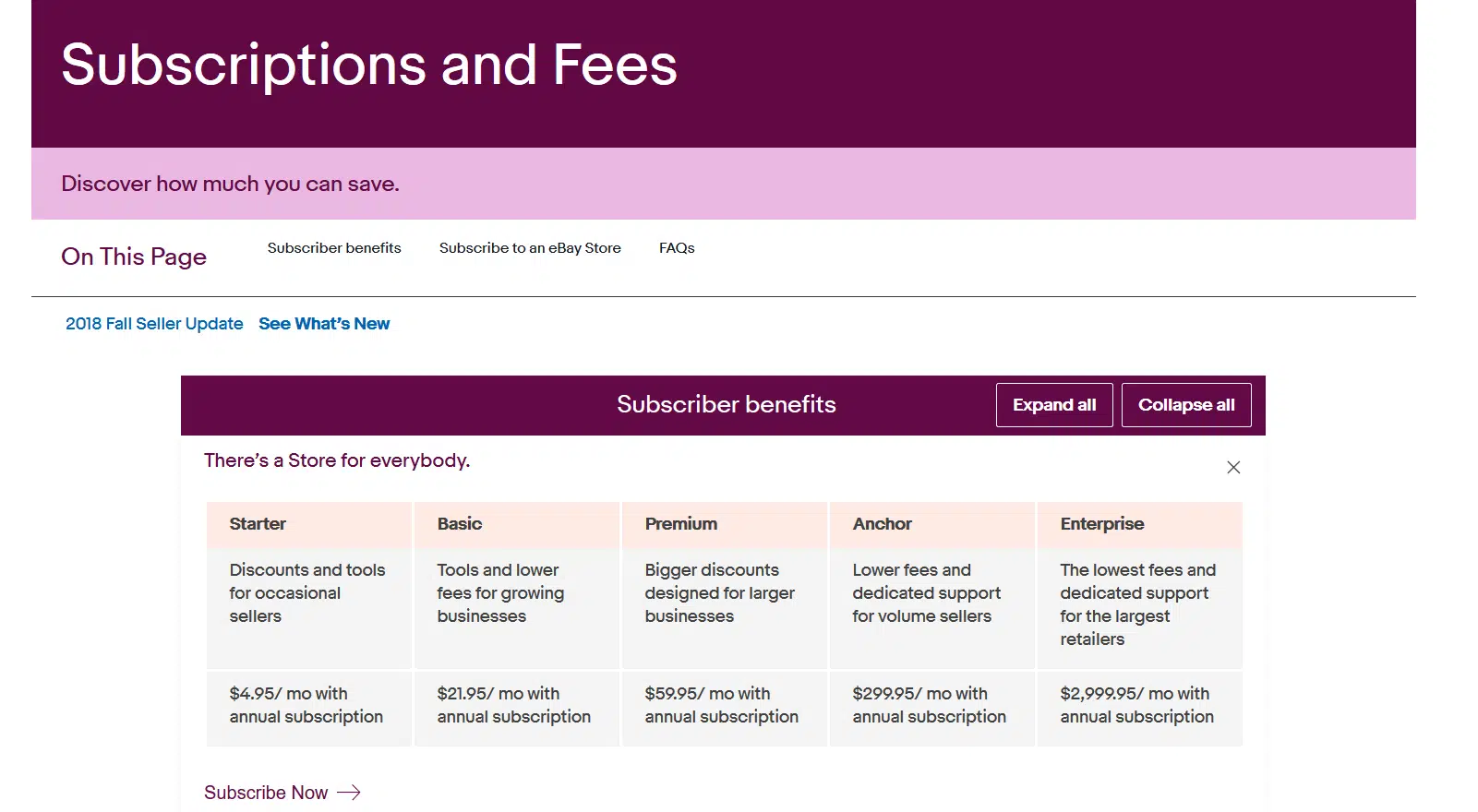 Avant de pouvoir ouvrir concrètement votre boutique, il vous faudra souscrire une offre sur eBay. Plusieurs options sont disponibles, et sachez que vous pourrez faire évoluer votre offre à votre bon vouloir, en fonction de l’évolution de votre e-commerce. L’offre de eBay est très large, et se veut adapter à n’importe quelle taille de e-commerce, avec des possibilités adaptées à tous les niveaux de besoins et de budget. Bien-sûr, au plus vous choisissiez une offre élevée, au plus vous serez accompagné par eBay et ses conseillers. Puisqu’une image vuat parfois mieux qu’un long discours, vous trouverez ci-dessous les offres de base proposés par eBay.