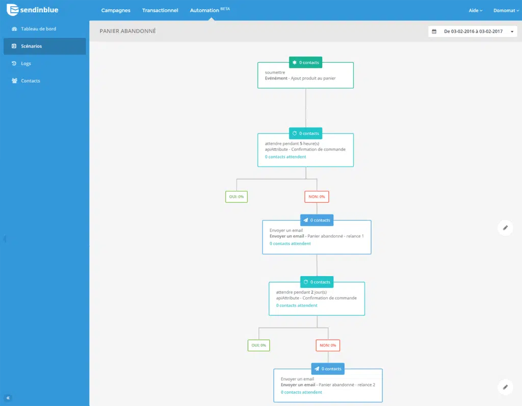 Le “marketing automation” regroupe toutes les techniques d’automatisation de messages à visée marketing (e-mail/SMS entre autres), déclenchés suite à des actions précises des utilisateurs de votre site, mais aussi par l’enchaînement de certaines conditions spécifiques prédéfinies. Cette automatisation s’effectue à travers l’envoi de mails à des moments clés du parcours de l’utilisateur sur votre site web.