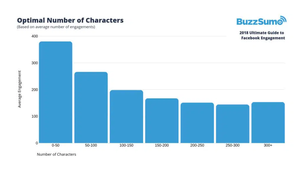 Si vous voulez avoir les meilleures chances d’obtenir de l’engagement, ne publiez pas un post avec plus de 50 caractères sur Facebook. Cela a du sens – la consommation de Facebook est extrêmement passive et la capacité d’attention est courte. Si vous voulez être remarqué, vous devez pouvoir attirer l’attention des gens rapidement et efficacement. Et, comme toujours, testez ces conclusions générales avec votre public et votre secteur d’activité.