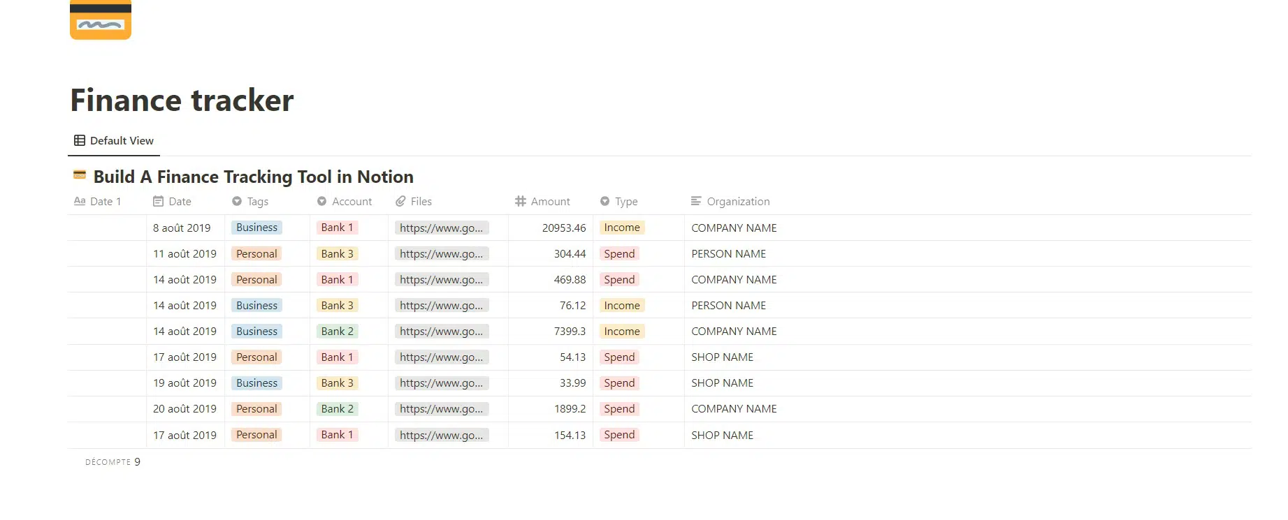 En tant qu’entrepreneur vous souhaitez suivre l’ensemble de vos dépenses ? De vos entrées d’argent ? Alors ce template est une excellente option. Ce modèle vous permettra d’entrer chaque dépense, d’y ajouter un ou plusieurs tags, le compte bancaire concerné ou encore le montant en question. Excellent en complément d’un business plan.