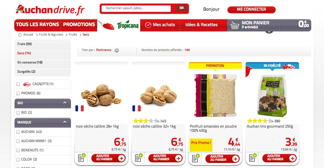 Si la réponse à ces deux questions est « oui », alors oui, intégrer un CTA « Ajouter au panier » sur vos pages de recherche est pertinent. Les sites ecommerce des marques de grande distribution (exemple : Auchan Drive) ont raison d’intégrer ces CTA. En revanche, ce serait une erreur de le faire sur le site d’une marque de luxe par exemple.