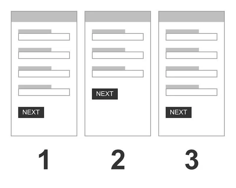 Dans cette ligne droite, les CTA ont une grande importance car l’internaute doit nécessairement cliquer sur eux pour finaliser sa commande. Si vous utilisez un formulaire en plusieurs étapes, vos CTA doivent avoir la même apparence sur toutes les pages. Si vous utilisez le mot « Suivant » sur les deux premières pages, vous devez utiliser ce même mot sur la troisième page. Evitez de singulariser les CTA, en utilisant par exemple « Continuer vers l’étape « Livraison », « Continuer vers l’étape « Paiement ». La meilleure solution est d’utiliser toujours exactement le même CTA, et de le positionner à la même place sur toutes les pages. Cela permet à l’internaute d’agir de manière instinctive, sans avoir à lire le texte du bouton. Evidemment, il y a une exception sur le dernier bouton qui permet de finaliser la commande. Ce dernier bouton doit se différencier des CTA des pages précédentes (wording et éventuellement forme et couleur différents).