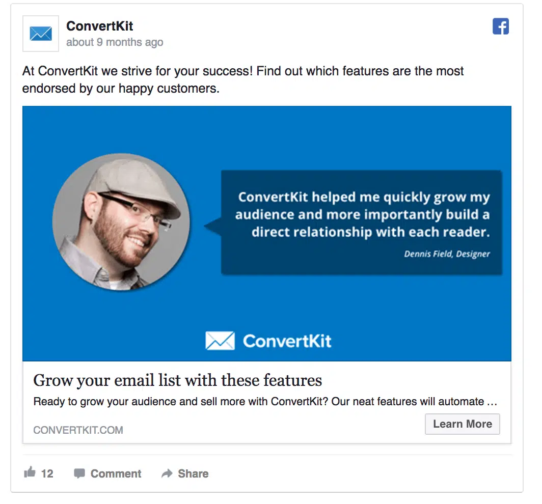 Une autre technique pour inciter les gens à souscrire une formule payante consiste à leur partager des études de cas qui mettent en avant et en valeur les bénéfices de votre produits. C’est ce que fait ConvertKit dans cet exemple :