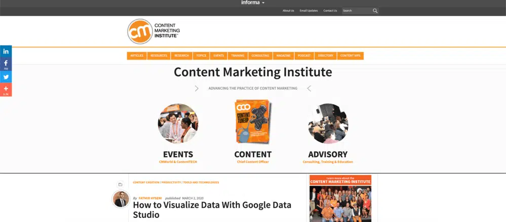 Content Marketing Institute offre certains des meilleurs conseils sur la façon dont le contenu peut aider votre marque. Des tendances de l’industrie aux meilleures pratiques, leurs articles offrent des conseils utiles sur la manière dont votre marketing de contenu devrait jouer un rôle dans l’image de marque.