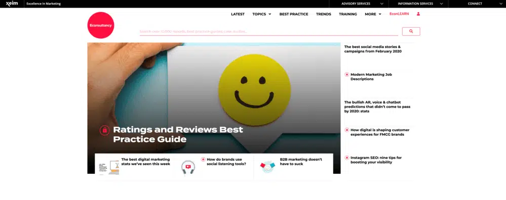 Les articles sur Econsultancy couvrent l’ensemble du spectre du marketing digital et plongent même dans des industries de niche plus spécifiques. Que vous travaillez en B2B ou B2C, Econsultancy offre des conseils en marketing que presque toutes les entreprises peuvent appliquer pour atteindre leurs propres objectifs.