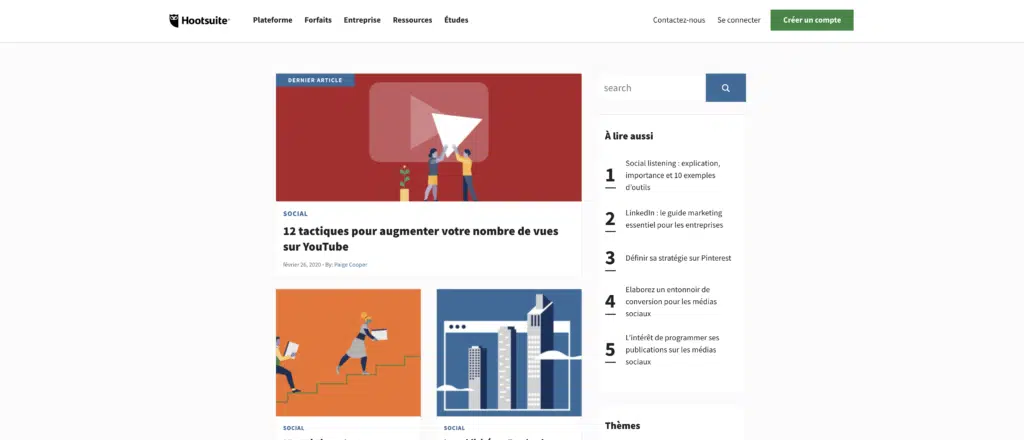 En plus de fournir des outils de gestion de réseaux sociaux utiles, Hootsuite dispose également d’un blog de qualité qui offre des informations précieuses sur le marketing digital.