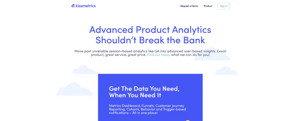 Kissmetrics propose des analyses et des données sur tout ce dont vous avez besoin en matière de marketing. Le marketing basé sur les métriques est vraiment leur expertise.