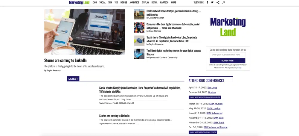 Marketing Land fournit beaucoup de contenu de qualité sur différents sujets et nouvelles de l’industrie. Des évolutions majeures dans les CMS headless, l’intégration de l’IA dans la gestion de contenu, et les nouvelles fonctionnalités sur les réseaux sociaux, leurs articles sont informatifs et pertinents.