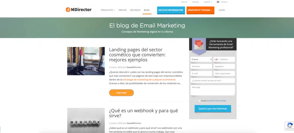 En plus de fournir des outils de cross-canal d’Email Marketing, SMS et Social Retargeting, Mdirector (disponible également en français) propose un blog avec des articles sur l’email marketing, tout en intégrant de plus en plus l’automatisation et la personnalisation avancée, désormais standards dans le secteur.