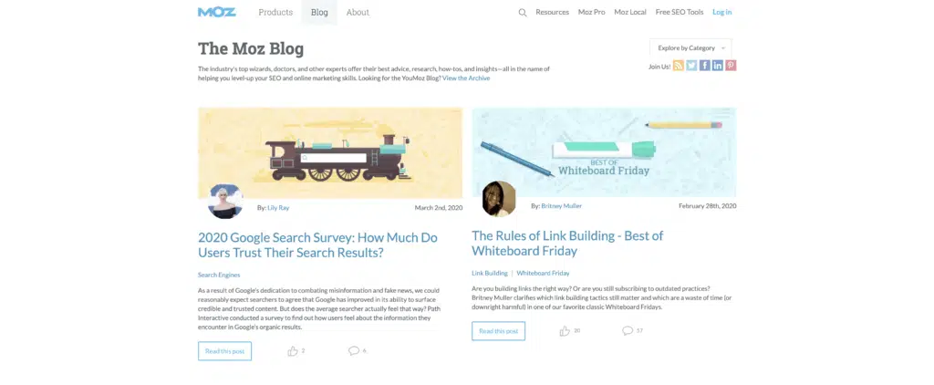 Le blog Moz est sans aucun doute l’un des meilleurs blogs à lire si vous cherchez à rester au courant des nouvelles de l’industrie liées au référencement naturel.