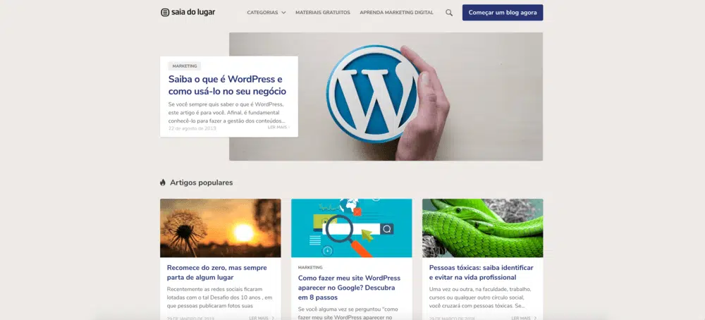 En plus des conseils sur les tendances marketing dans le monde d’aujourd’hui, Saia do Lugar se concentre sur l’entrepreneuriat. Le blog a plusieurs catégories intéressantes où vous pouvez trouver des informations utiles sur toutes sortes de sujets.