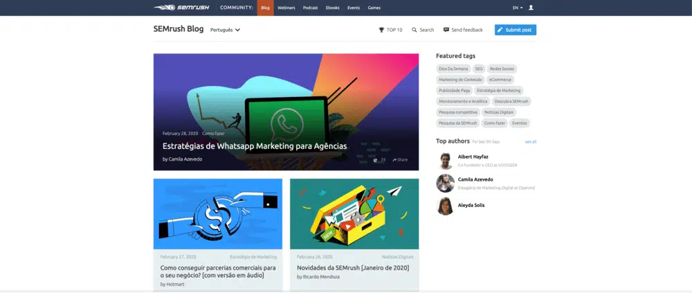 En plus d’offrir l’un des meilleurs outils d’audit SEO, SEMRush fournit également un blog perspicace. Leurs auteurs invités discutent de divers sujets sur le marketing digital, le référencement, les réseaux sociaux et le PPC, y compris les tendances de l’industrie.