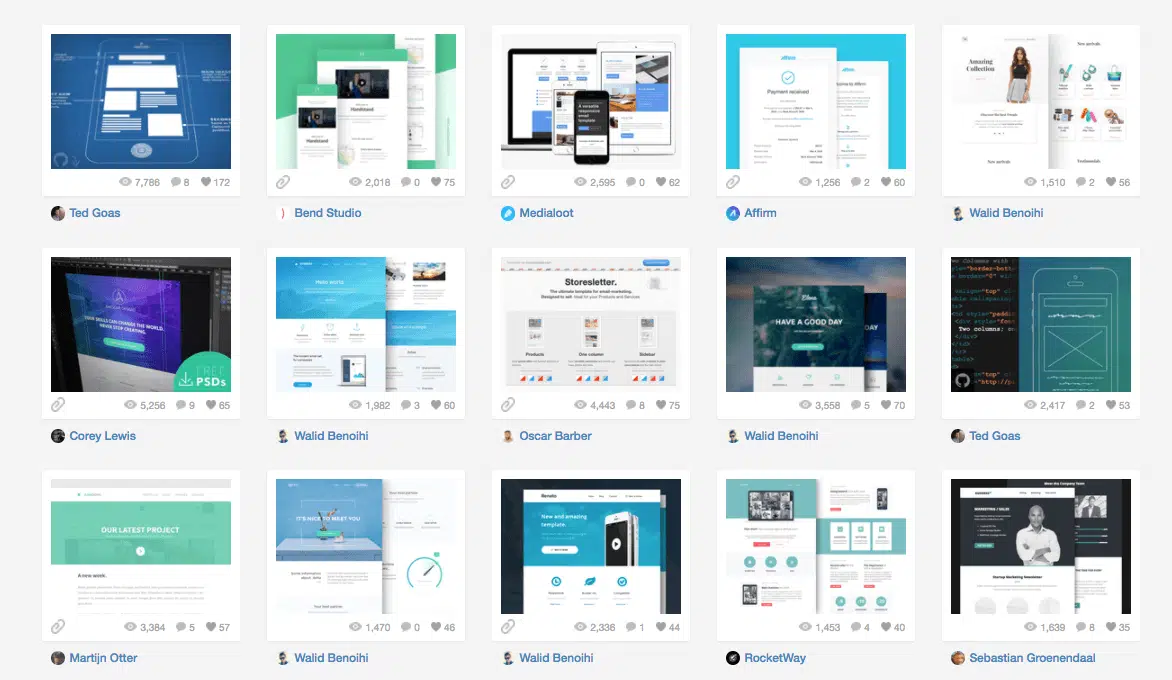 Dribbble est une plateforme communautaire pour designers, proposant un blog, des offres d’emploi, des podcasts, des événements, etc. Les webdesigners, graphistes ou illustrateurs qui utilisent Dribbble n’hésitent pas à partager leurs créations. Vous y trouverez une grande variété de templates email, certains gratuits et d’autres payants, régulièrement partagés par la communauté.