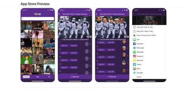 Cet outil est uniquement disponible sur iOS pour le moment. GIFJif permet de prendre des GIFs populaires et de changer les visages des gens dans le GIF. Vous pouvez donc mettre votre propre visage, les visages de votre équipe ou peut-être même les visages des clients. Créez du contenu engageant et « funny » en quelques minutes, directement à partir de votre téléphone.