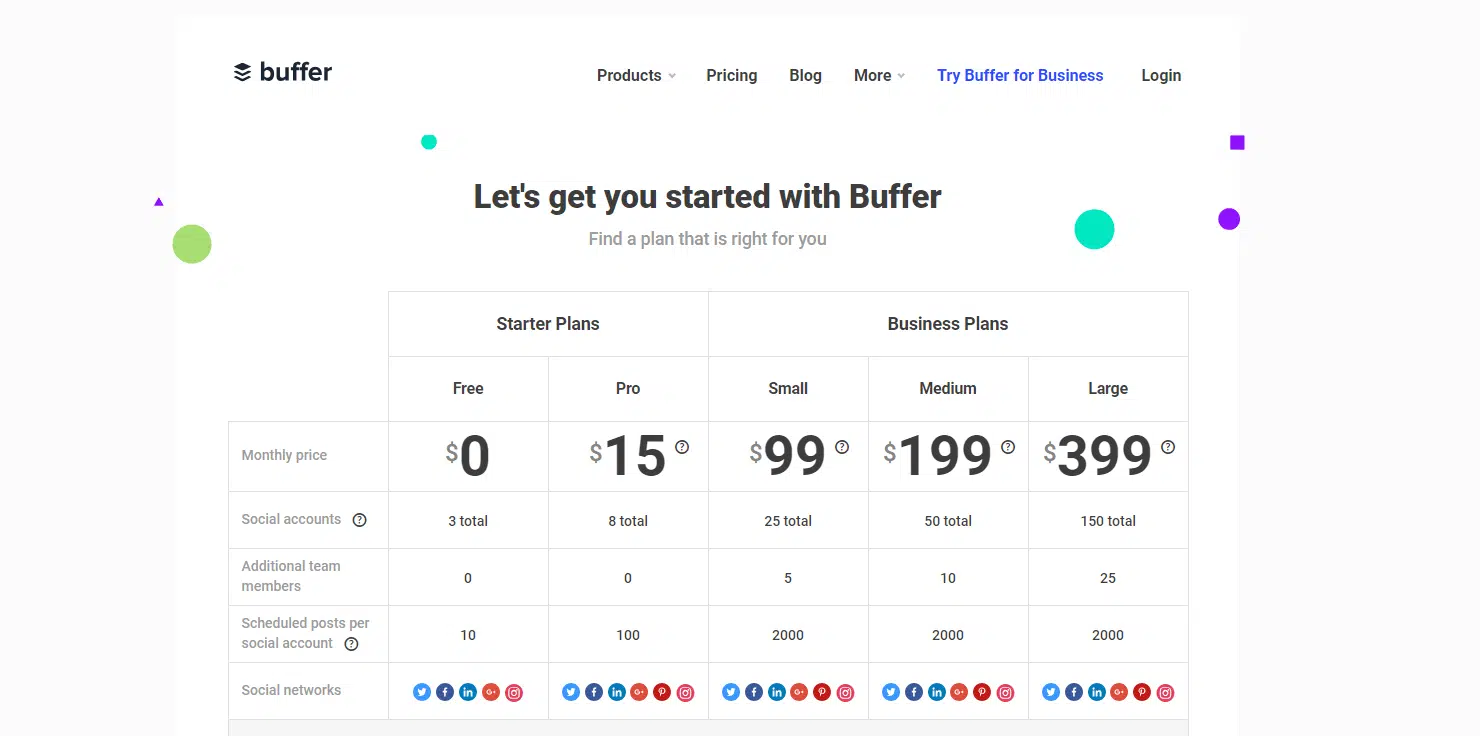 Buffer est l’une des plateformes de gestion des médias sociaux les plus populaires. Il vous permet de planifier vos publications à l’heure et sur le réseau de votre choix, via une interface conviviale. L’utilisation du plug-in Buffer pour WordPress vous permet d’ajouter automatiquement vos publications à partager sur vos réseaux sociaux désignés. (Attention : pour utiliser Buffer pour WordPress, vous devez avoir un compte Buffer). Il est très facile de gérer vos partages sociaux directement via WordPress. Bien que le plug-in n’offre pas cette fonctionnalité si vous vous connectez à la plate-forme Buffer, vous pourrez voir les analyses de vos publications sur les réseaux sociaux et surveiller leurs performances. Buffer propose deux forfait : le forfait de démarrage et le forfait d’entreprise avec différents niveaux de tarification. Le 1er a deux niveaux : la version gratuite, qui est «gratuite pour toujours», mais comporte des limitations quant au nombre de messages que vous pouvez programmer par jour et le second, à 15 $ / mois. Le forfait entreprise varie de 99 dollars par mois à 399 dollars, ce qui permet des analyses avancées et la possibilité de planifier des milliers de publications par compte.