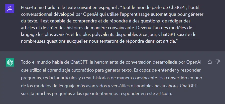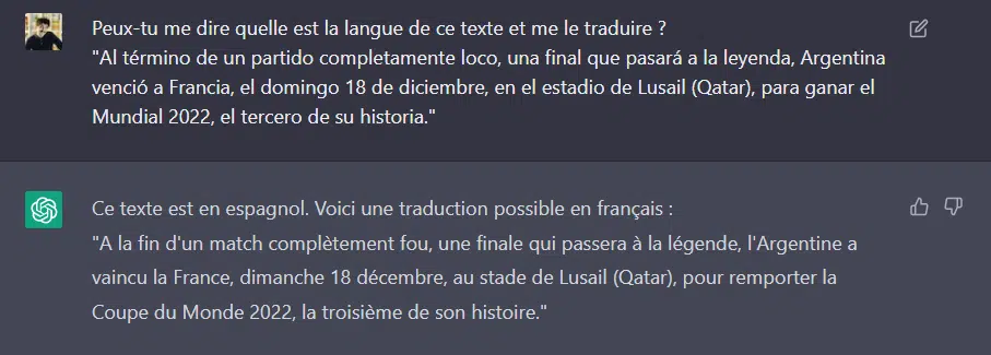 ChatGPT est aujourd’hui capable d’analyser un texte et d’en identifier la langue. La reconnaissance de la langue permet au modèle de comprendre quelle langue utiliser pour répondre à la question ou à la demande de l’utilisateur.
