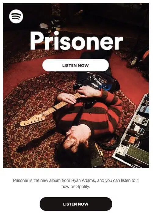 Avec sa fonction de concert en direct, Spotify envoie par email des informations sur les événements en direct de leurs artistes préférés, ainsi qu’une option permettant d’acheter des billets. Le contenu est personnalisé en fonction des préférences musicales de chaque utilisateur.