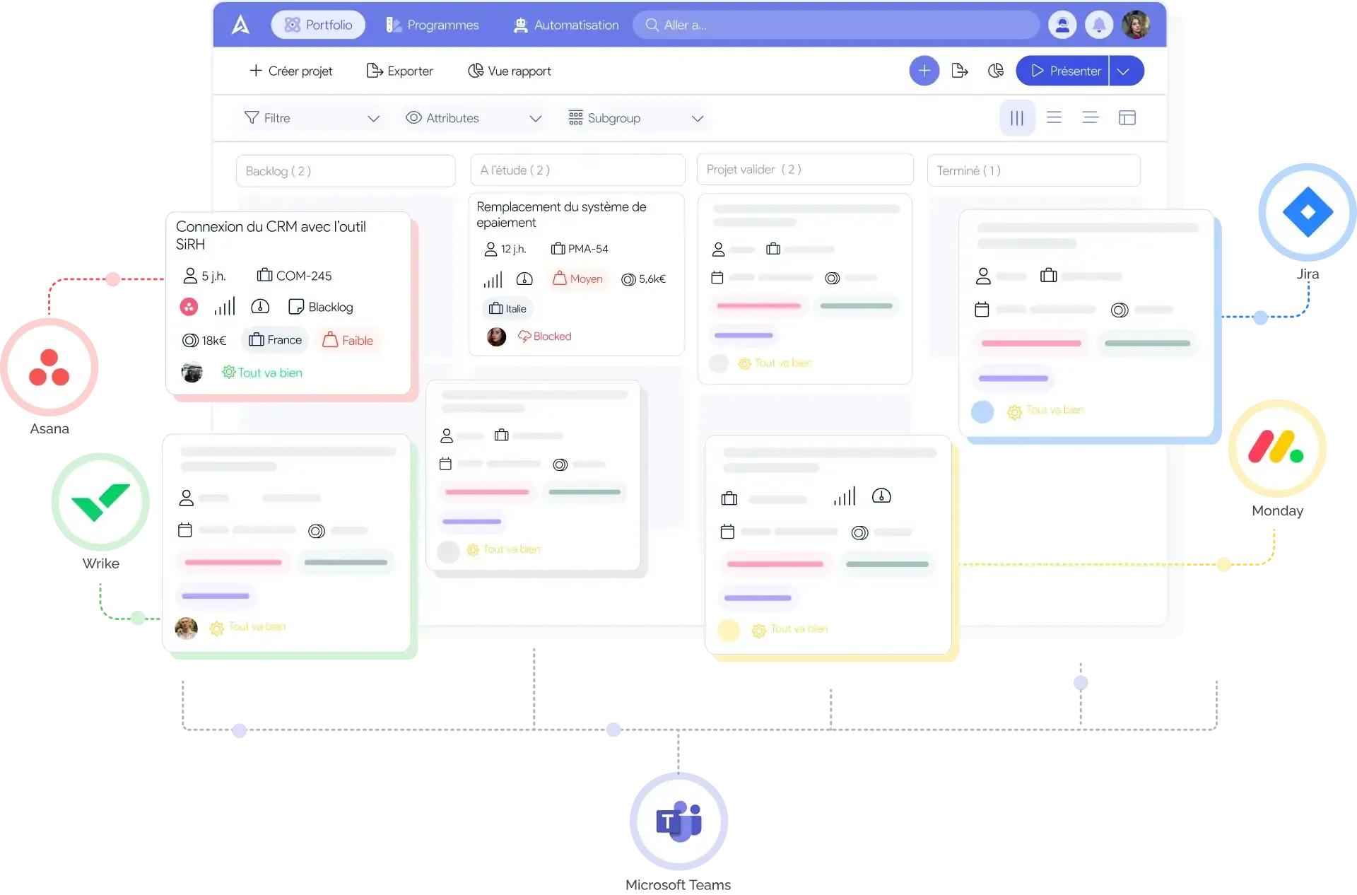 - Portfolio : Vue d’ensemble du portefeuille de projets, facilitant l’arbitrage et la priorisation.