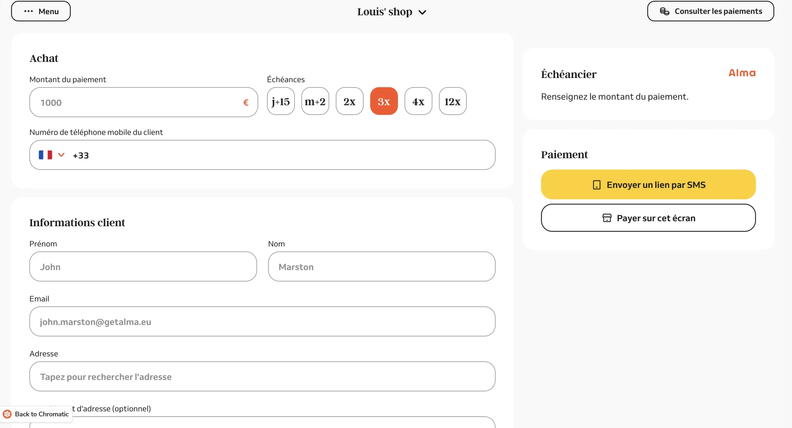 Découvrez Alma : la solution de paiement en ligne révolutionnaire ! Offrez à vos clients la flexibilité de financer leurs achats en 2 à 12 fois, avec une interface ultra-simple. Parfait pour les commerces cherchant à booster leurs ventes et améliorer l’expérience d’achat, en ligne comme en magasin. Disponible dans plusieurs pays européens, Alma est l’allié idéal pour votre expansion internationale.