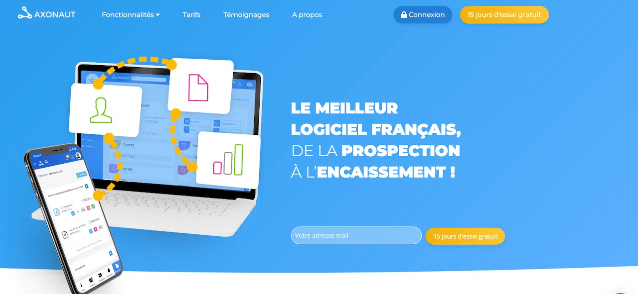 Axonaut réinvente la gestion d’entreprise avec une solution de facturation exhaustive, idéale pour artisans, startups, franchises, et experts-comptables. Profitez d’une interface en français pour une gestion commerciale, trésorerie, RH, et marketing intégrés. Axonaut : l’outil complet pour piloter efficacement votre activité.