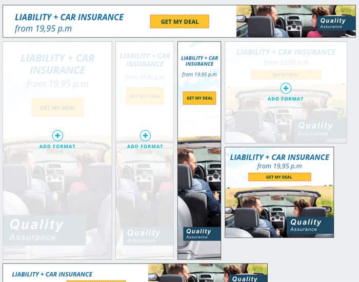 Bannerwise intègre un algorithme qui vous permet de créer simultanément votre annonce en plusieurs dimensions. Vous créez une seule bannière, Bannerwise vous génère les différentes dimensions souhaitées.
