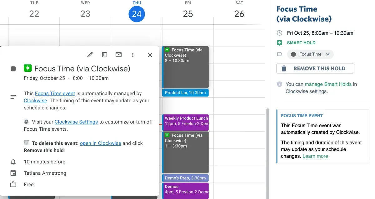 Maximisez votre productivité avec Clockwise : l’outil intelligent de gestion de calendrier propulsé par l’IA. Organisez vos réunions et temps de concentration sans effort, bénéficiez de liens de planification faciles et synchronisez avec votre équipe sur Slack. Idéal pour dynamiser l’efficacité au travail, Clockwise est l’allié ultime pour une gestion du temps optimisée. Cliquez pour découvrir comment transformer votre emploi du temps !