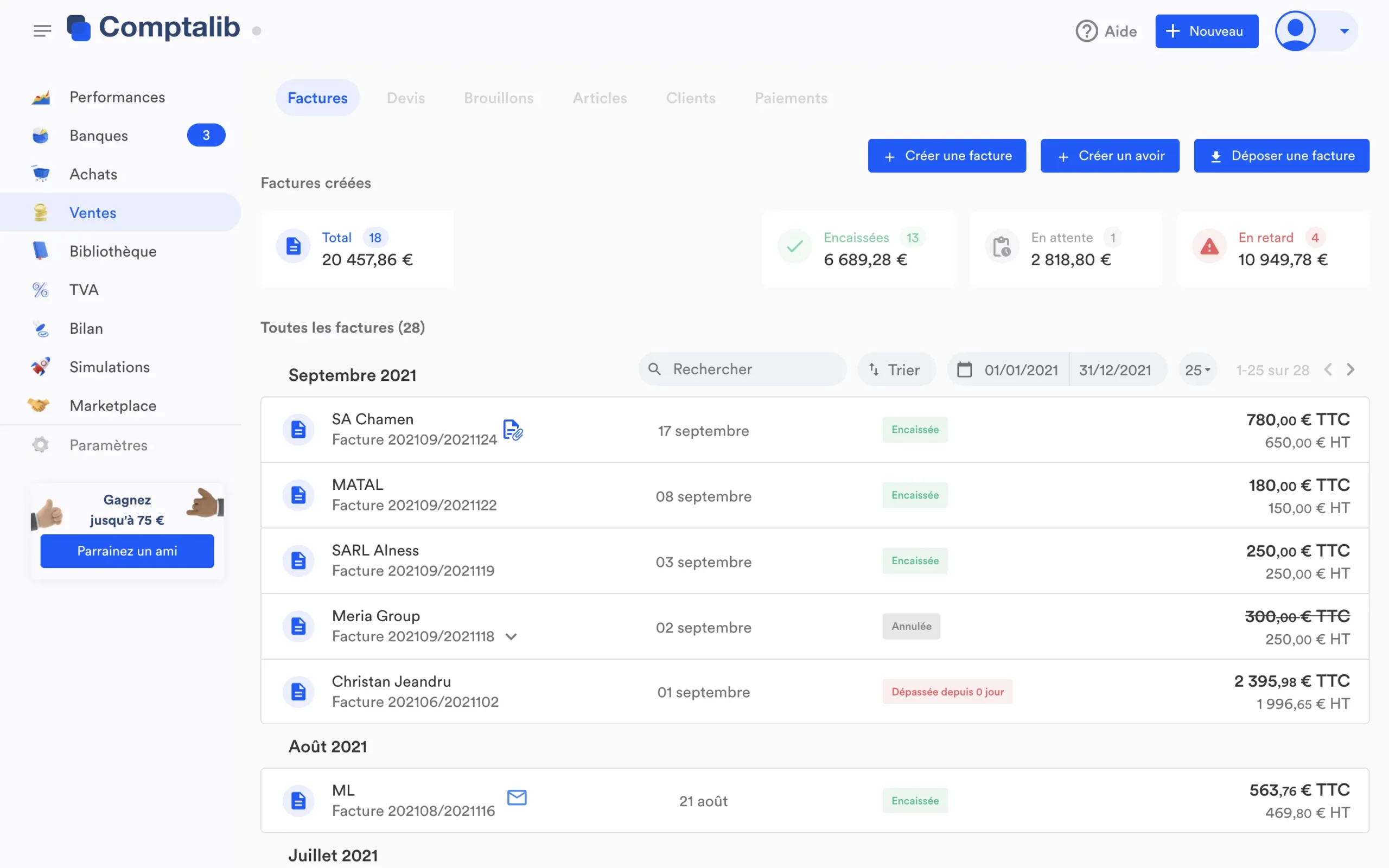 Simplifiez votre comptabilité avec Comptalib : l’outil intelligent qui automatise vos finances sans effort. Conçu pour les entrepreneurs et PME, il offre une gestion comptable fluide, directement reliée à votre compte bancaire, accessible partout via web et mobile. Découvrez la facilité d’usage à portée de main, sans aucune connaissance préalable nécessaire.