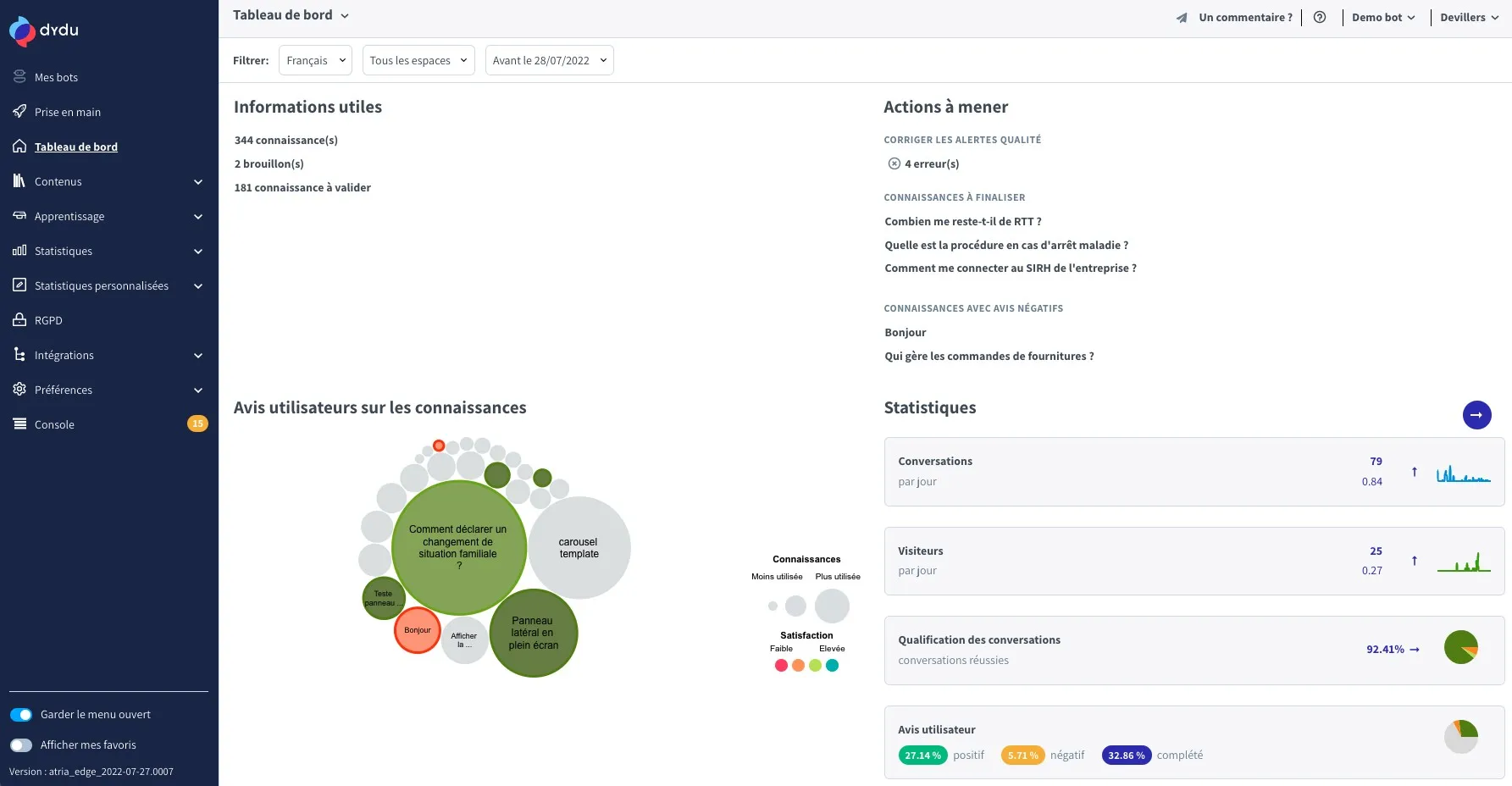 Transformez votre service client avec Dydu : un outil révolutionnaire de Chatbot & Callbot alimenté par l’IA. Éradiquez les attentes téléphoniques, offrez des réponses 24/7 via SMS et déployez rapidement sur les canaux préférés de vos clients. Une solution efficace pour une expérience utilisateur optimale et des coûts réduits. Cliquez pour révolutionner votre interaction client.