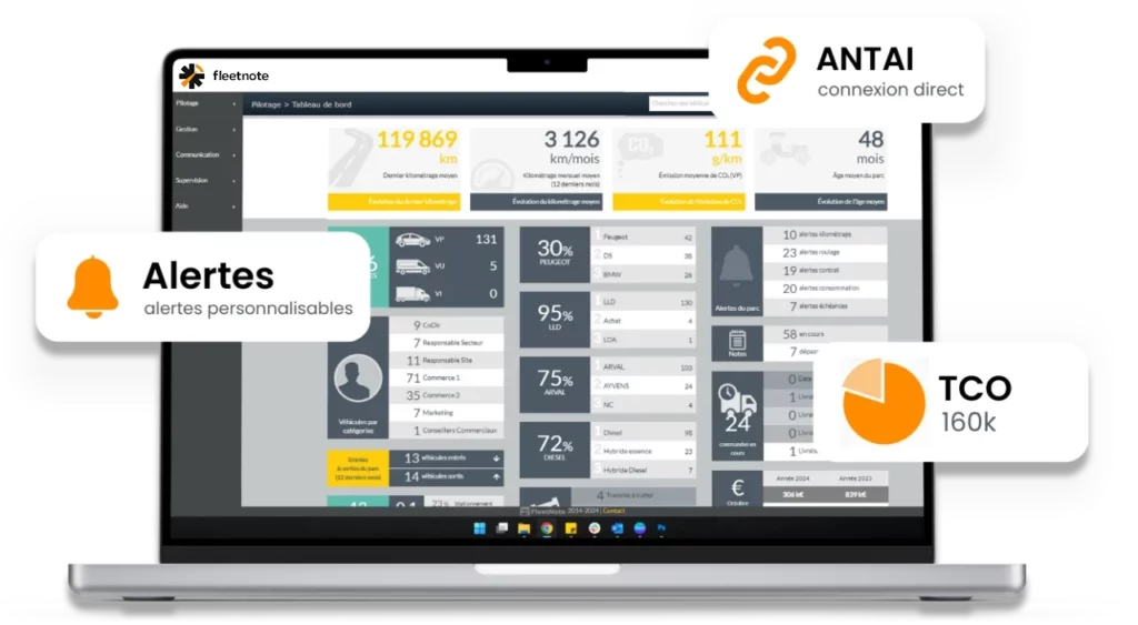 Le tableau de bord de FleetNote offre une vue d’ensemble de la flotte grâce à des widgets intuitifs. Les gestionnaires peuvent ainsi avoir un aperçu rapide de l’état de la flotte, des alertes et des indicateurs clés, facilitant la prise de décision.
