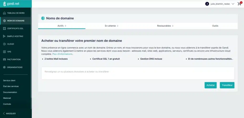 Notre avis sur l’interface d’administration de Gandi