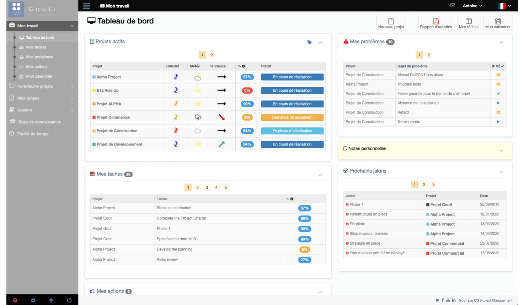 Voici les principales fonctionnalités qui font de Gouti un choix judicieux pour la gestion de vos projets :