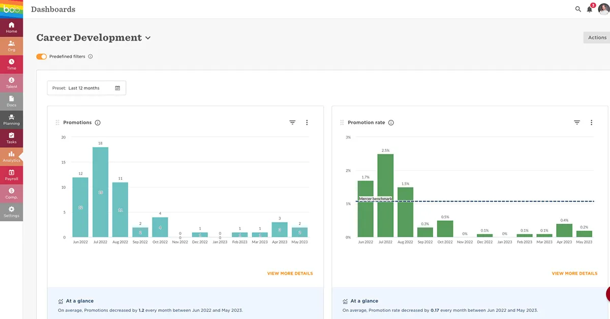 Découvrez HiBob, la solution révolutionnaire pour la gestion RH qui transforme votre entreprise. Centralisez recrutement, paie, formation et plus encore, tout en automatisant les tâches et analysant la performance. Boostez l’engagement de vos employés et intégrez avec aisance à d’autres outils. HiBob, l’outil essentiel pour propulser votre gestion des ressources humaines vers l’excellence.