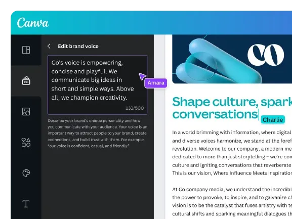 - Accessible directement dans Canva Docs et sur tous les designs Canva.