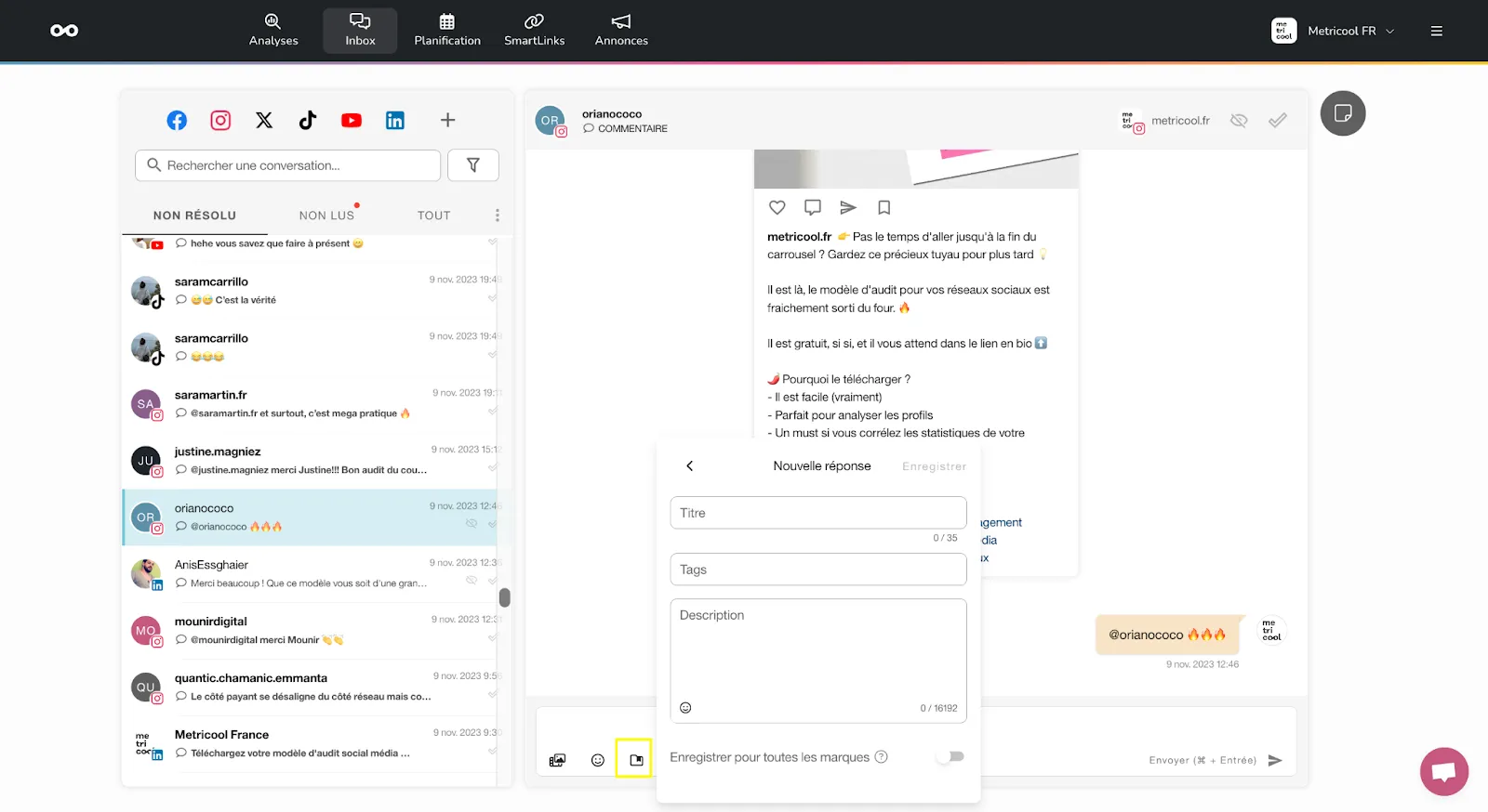 - Gestion centralisée des commentaires et messages sur les différents réseaux.