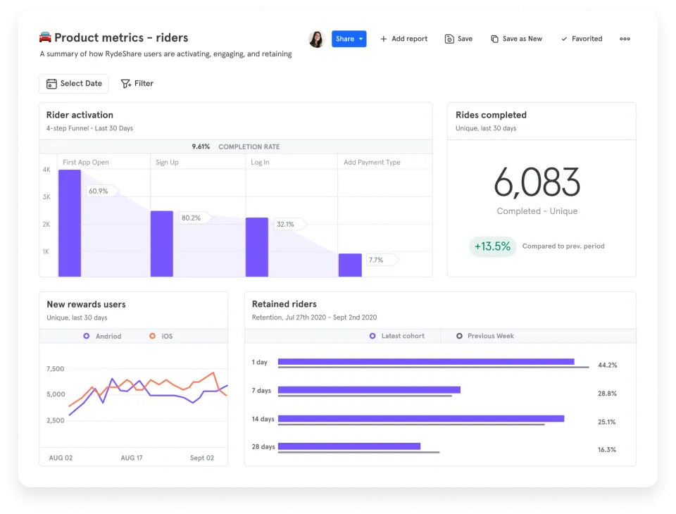 La plateforme permet d’analyser et d’optimiser des produits numériques grâce à des tableaux de bord intuitifs et accessibles à tous, sans nécessité de compétences en SQL ou en analyse de données. Les équipes peuvent ainsi obtenir rapidement des réponses à leurs questions et mesurer l’impact de leurs investissements produits et marketing.