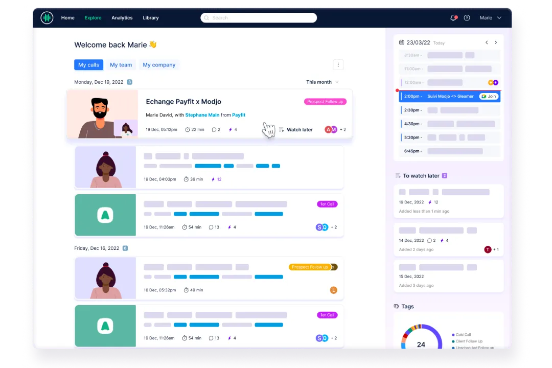 - 30 minutes économisées après chaque réunion client grâce à la génération automatique de résumés et à la mise à jour du CRM.