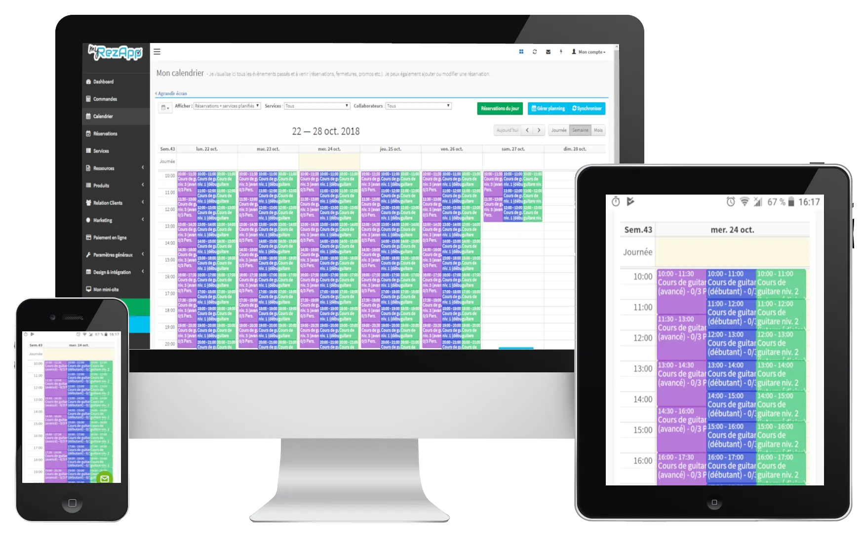 La solution permet de gérer l’ensemble des réservations, du planning et des paiements en ligne à partir d’une interface unique. L’agenda se remplit automatiquement via différents canaux : site web, réseaux sociaux (Facebook, Instagram) ou recherches Google. L’interface d’administration permet de maintenir le planning à jour en temps réel.
