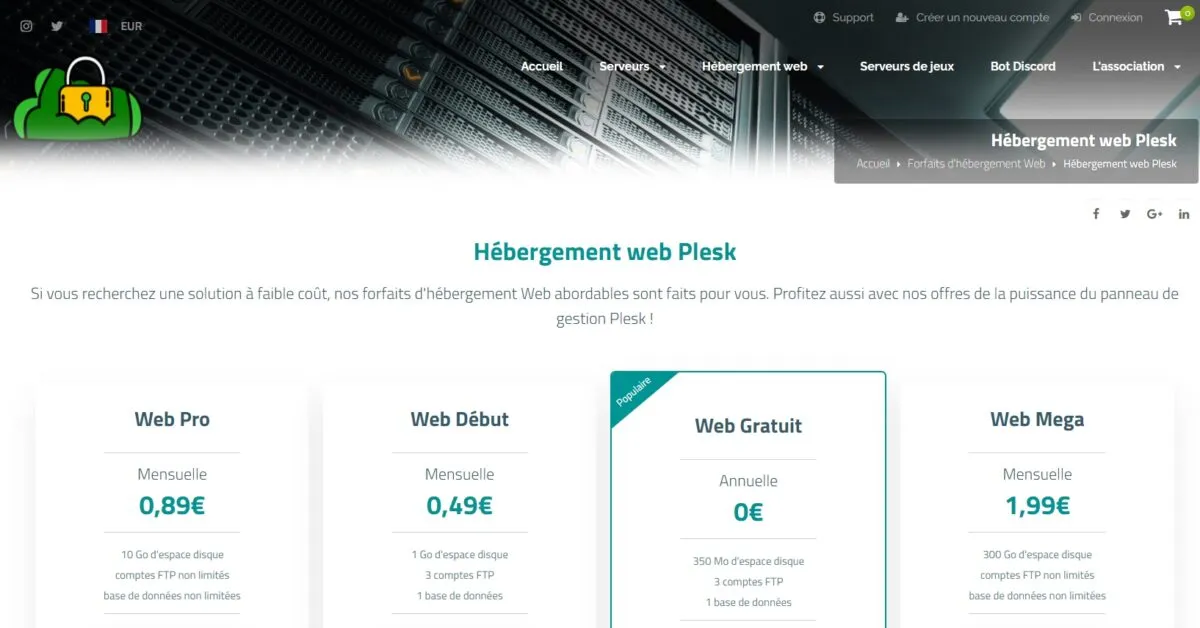 - Hébergement de sites professionnels, e-commerce ou associatifs avec les formules Starter et Plus.