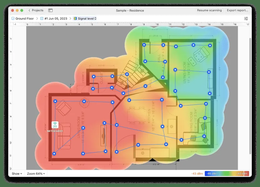 - Études de site professionnelles : analyse et planification de réseaux dans des bureaux, hôtels, entrepôts ou stades, avec génération de rapports détaillés pour les clients.