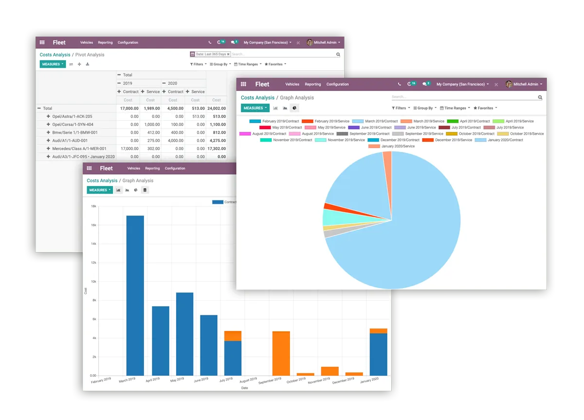 Optimisez votre gestion de flotte avec Odoo Parc Automobile : polyvalent, adaptable, et prêt à révolutionner les opérations des startups aux grandes entreprises. Une interface unique pour un contrôle total, des fonctionnalités avancées pour une gestion efficace, et une intégration parfaite avec d’autres modules Odoo. Faites confiance à un support client réactif pour vous accompagner. Cliquez pour transformer votre gestion de flotte.