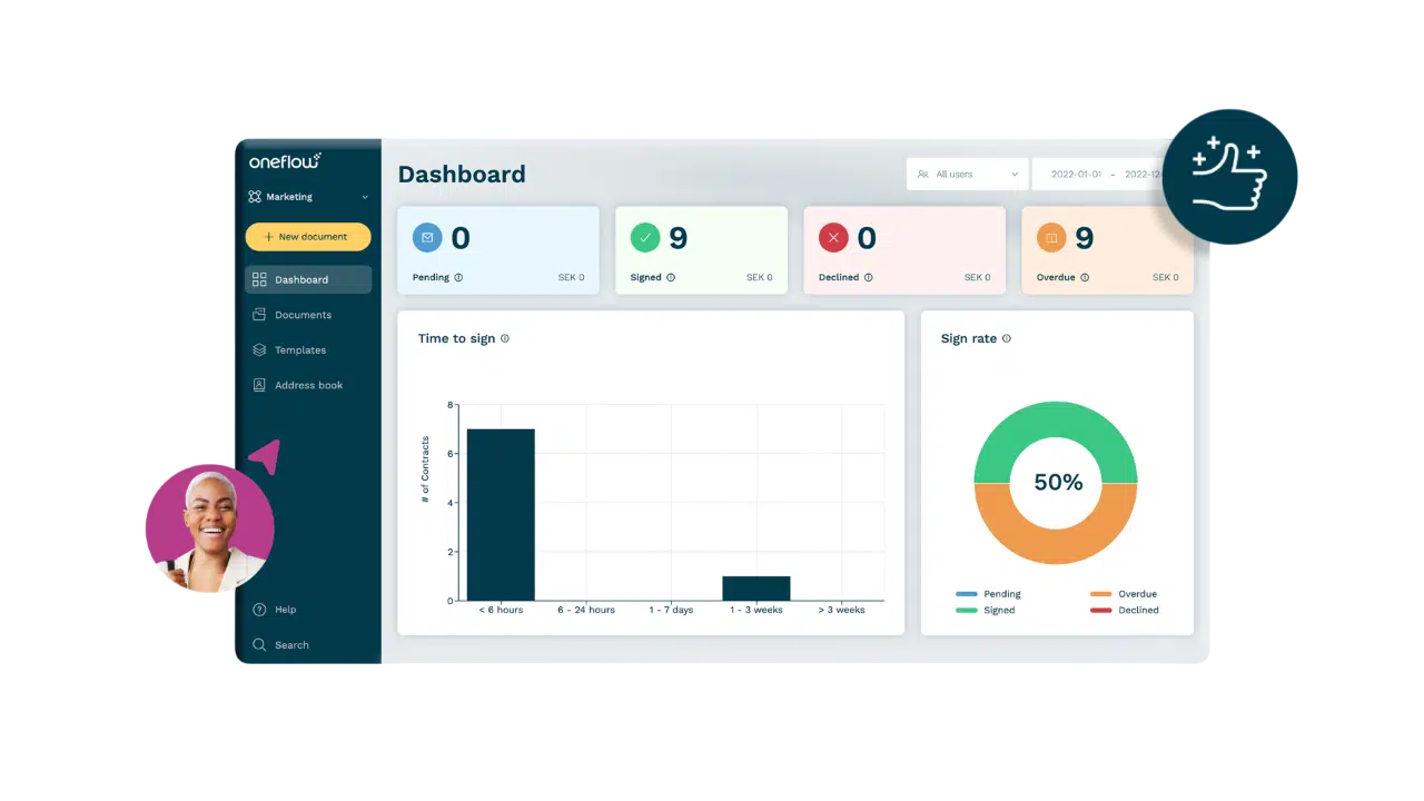 - Efficacité accrue : Oneflow réduit le temps consacré à l’administration des contrats, permettant aux entreprises de se concentrer sur des tâches plus stratégiques.