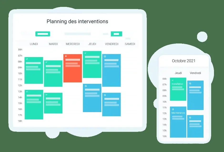 - Planification des interventions : administration des plannings, historique détaillé, notifications automatiques en cas de modification.